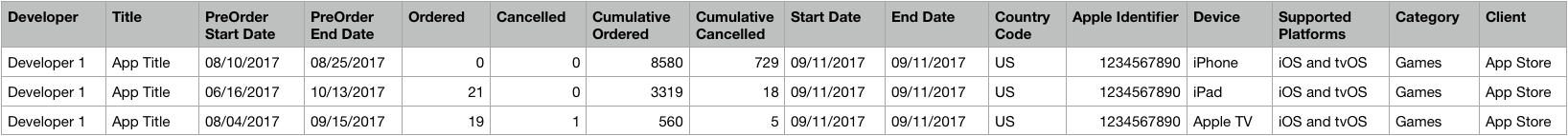 App Store Connect / Reference / Reporting / Pre-Order Report