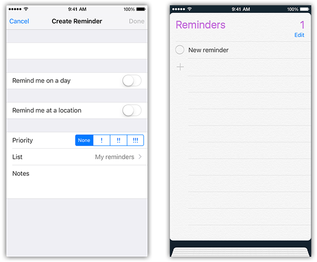 Availability: Creating a reminder is available in iOS 7.0 and later.
