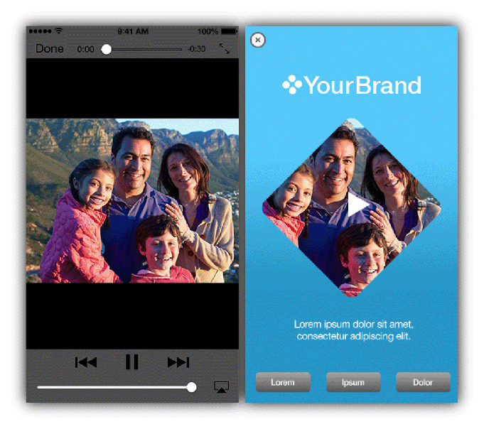 You can embed audio and video in your ad to enhance the users’ rich-media experience. Video can play in full-screen mode, or inline with other web content (see Figure 3-2). If you don’t want to use the default controls, you can design your own custom controls for inline videos. Because video is implemented with the standard HTML5 video element, you can apply CSS visual effects to it, just as you would to any other item in your ad: You can animate the video’s position on the page, transform its shape, overlay other web content on top of your video, and so on.